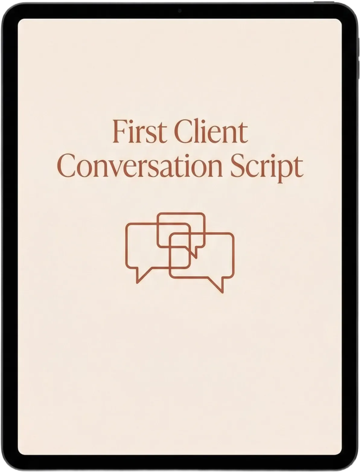 Word-for-word guidance for that initial "I think I can help you" conversation with potential clients. This covers your first conversation - and on the next page, you'll have the option to grab the complete script library if you want every scenario covered.